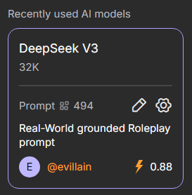 To change settings in a chat, click the gear icon next to the selected AI model and prompt in the site’s right-hand menu.